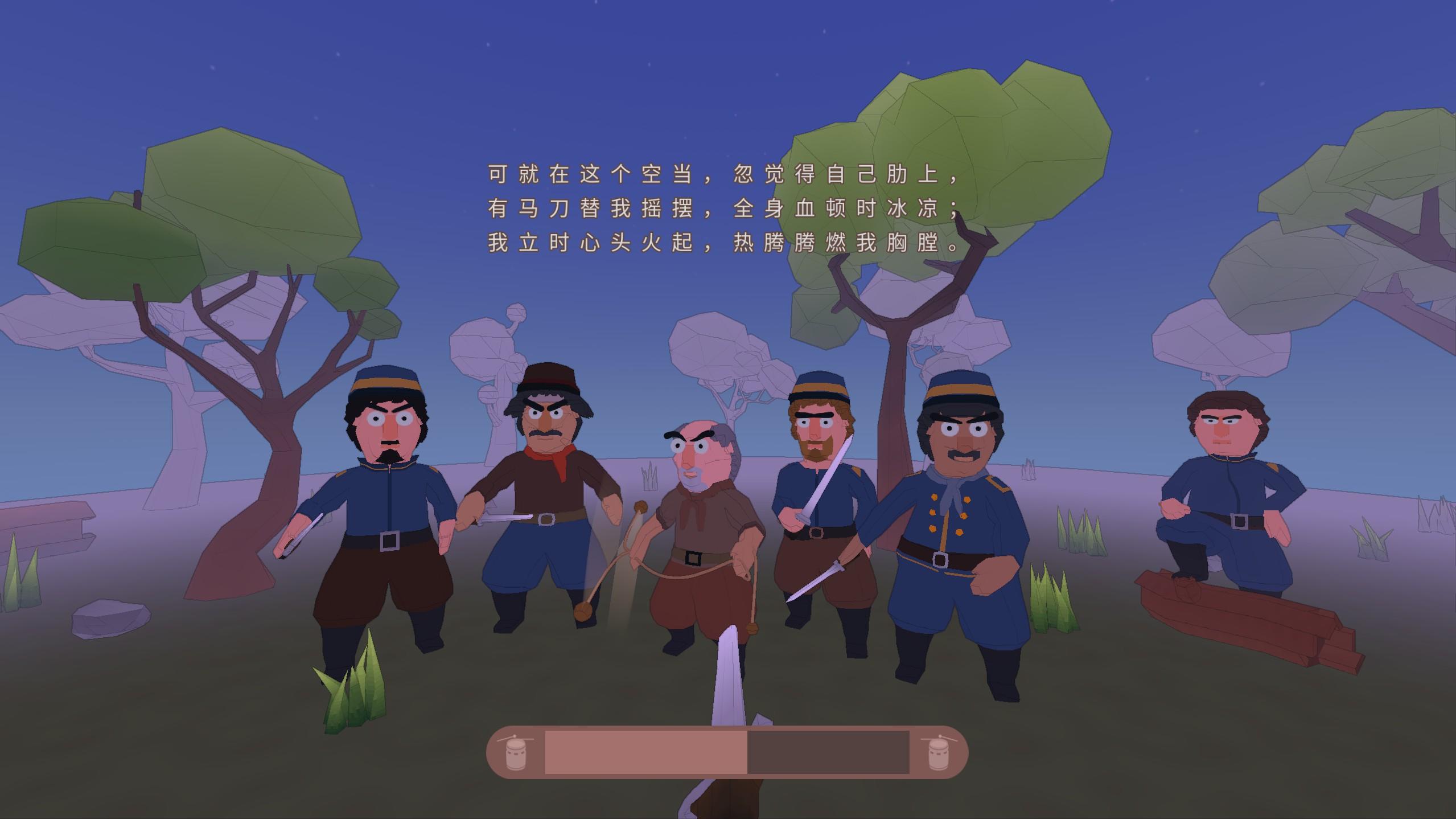 第一段的弹唱音游为玩家揭示了悲惨人生故事的开端——主角马丁·菲耶罗被强征入伍,游戏非常简单,只需要同时使得两边的进度条都拉满即可。