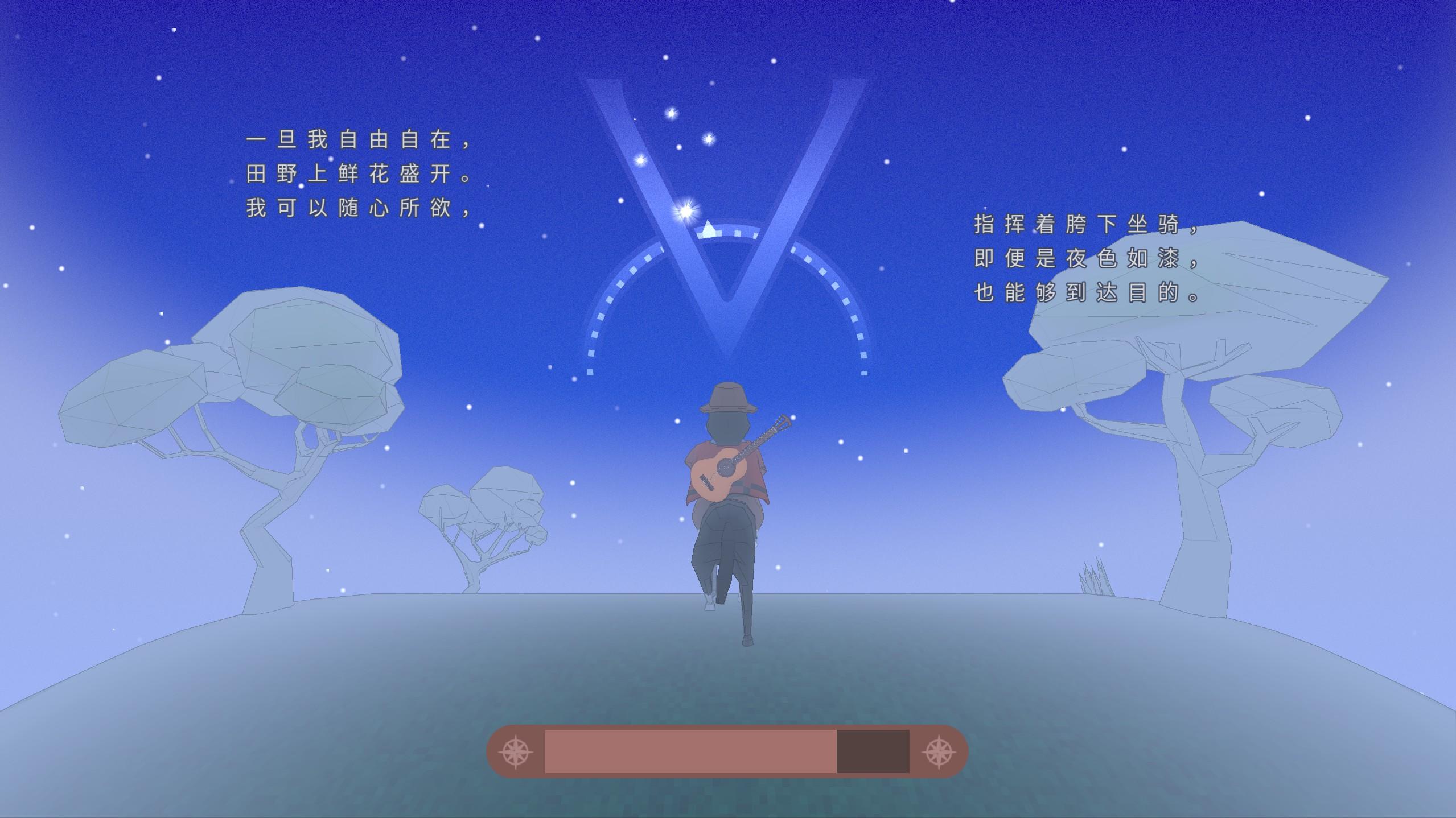 第三段操控游戏,主角从军队逃出来后踏上了回家的路,玩家需要将星星控制在V字内为主角指引回家的路,这里我还庆幸主角终于逃脱,星光不负赶路人。