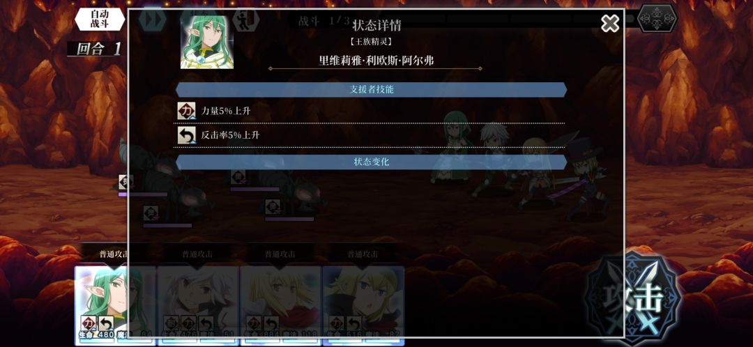 此外角色的行动顺序是根据队伍排列来决定,前期难度较低的情况下,小伙伴们可以选择左上角的自动战斗功能,降低了大家的肝度。