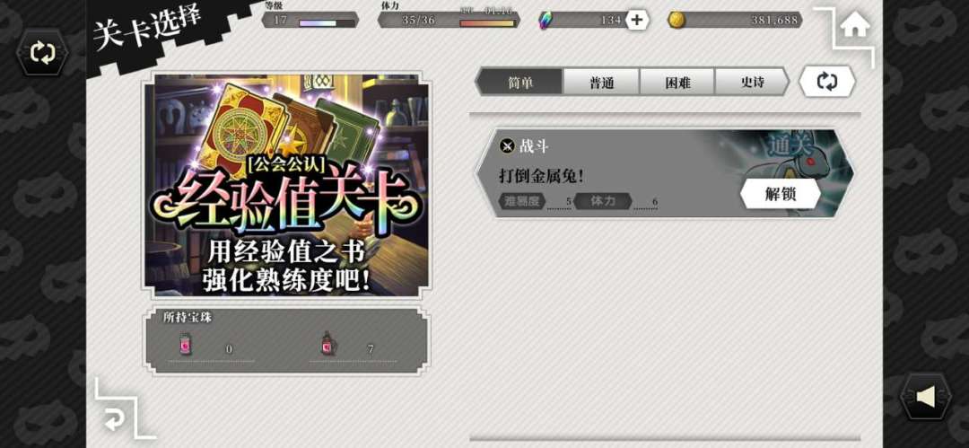 提升熟练度需要的经验书素材,小伙伴们除了通过任务成就等玩法获取之外,还可以挑战上图所示的经验值关卡,难度越高掉落的经验书数量以及品质也会提升。