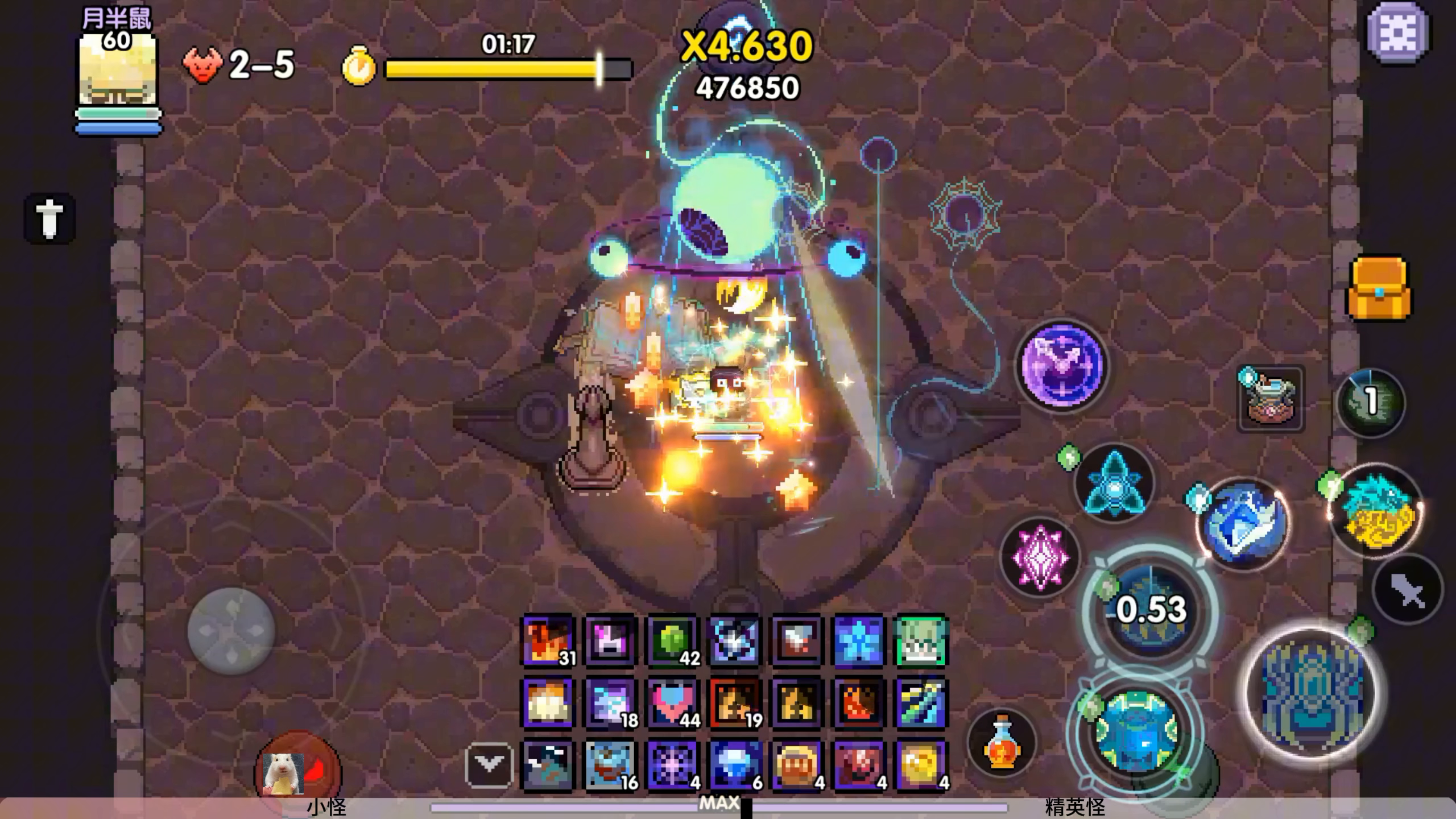 竞技场基础分与对最后精英怪造成的伤害挂钩,所有段位精英怪的属性都是一致的,精英怪不吃首领伤害。前面小怪部分决定的是最后的分数倍率,需要注意的是挨打也会扣分数倍率,尽量躲一下弹幕。