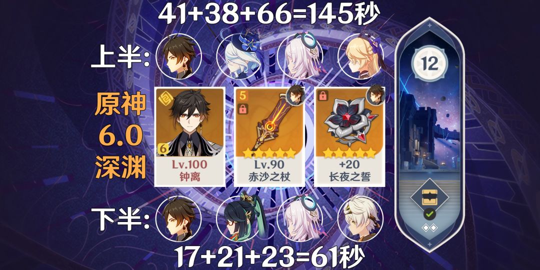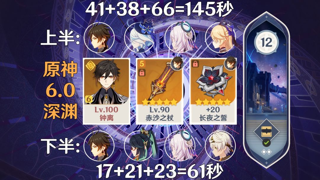 极中极!赤沙长夜钟离主C物理流登龙+火下落武神12层全间连打