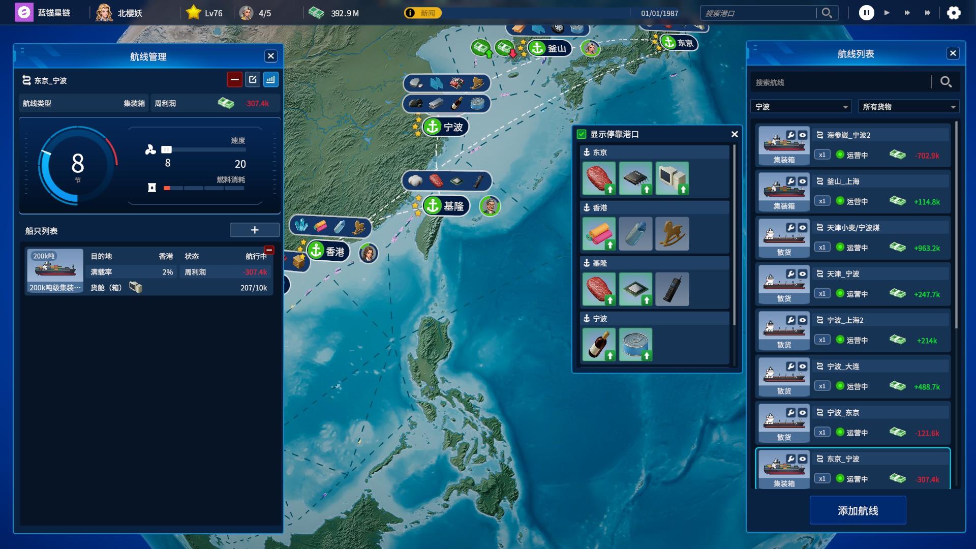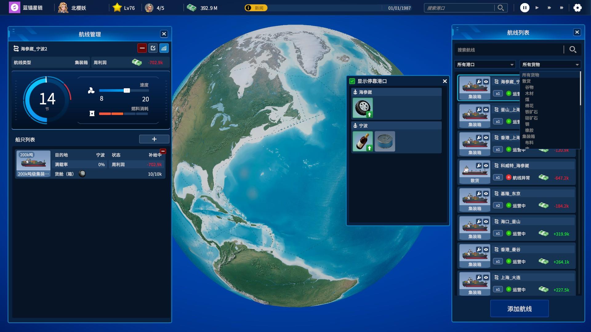2.这个航线列表逻辑很差,到后期一个港口一堆运输线要一个个排查时,信息筛选查看的逻辑真的非常不友好,已经筛选好如查看纽约运输纽约的船只,经常然后进入更改航线位置,或查看完消息出来后,筛选信息就恢复初始,需要重新再筛选一次。