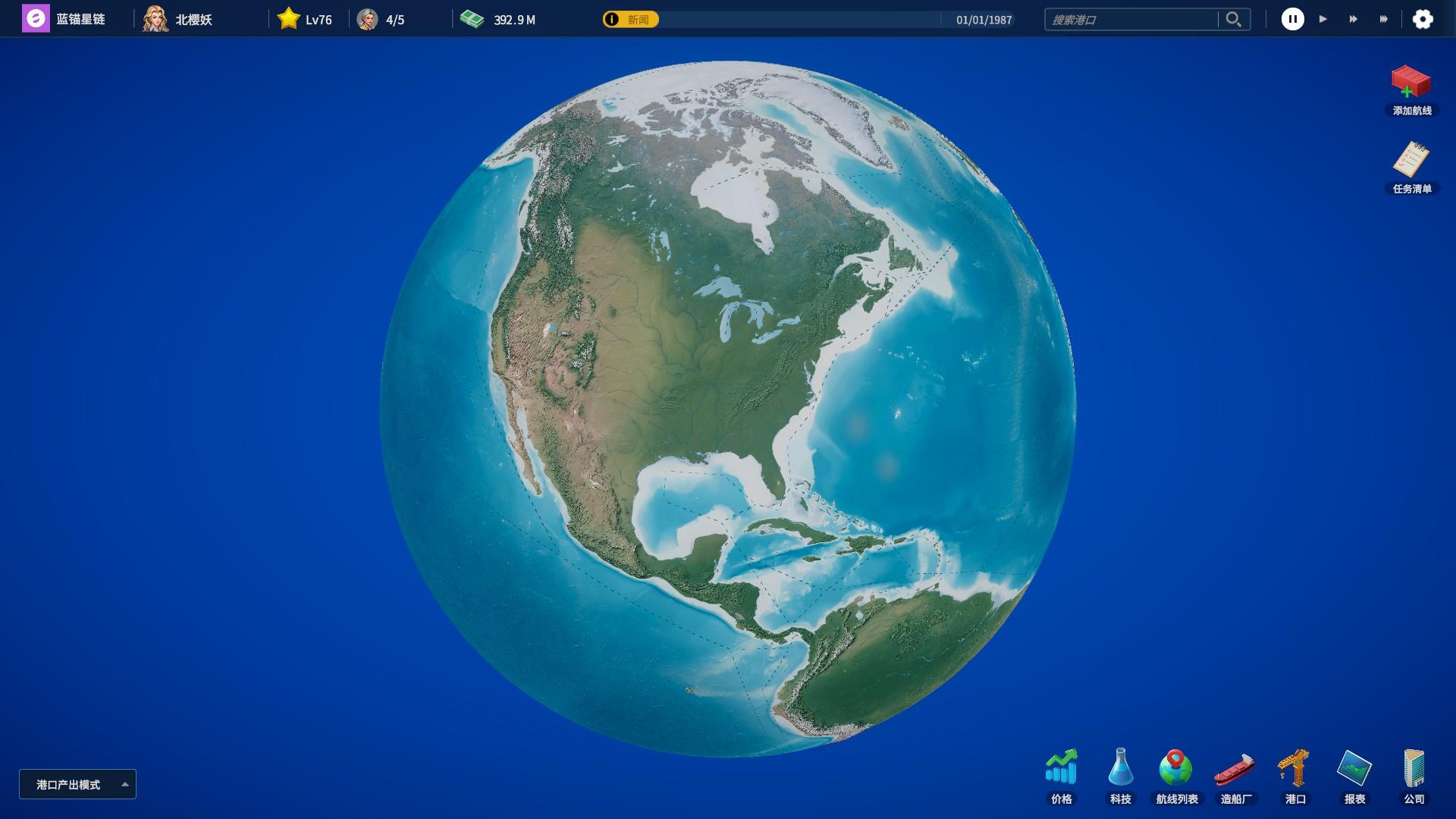 虽然游戏是直接沿用地球的地理模型,但至少在个人熟知的地理环境中亚洲板块和英吉利海峡等部分地区应当都齐全完整,且游戏除了真实地名作为港口外,并没有直接去划分国界线,在很大程度上避免了国际争端导致让人诟病,这是一个不错的做法,虽然游戏中的新闻会因为国家内部矛盾导致收益问题,但这种同时像是全球港口都能像游戏中一样不会因为国与国之间的政治因素导致航运断连,全球经济共同发展共同繁荣的景象我觉得才是游戏中最魔幻的地方。