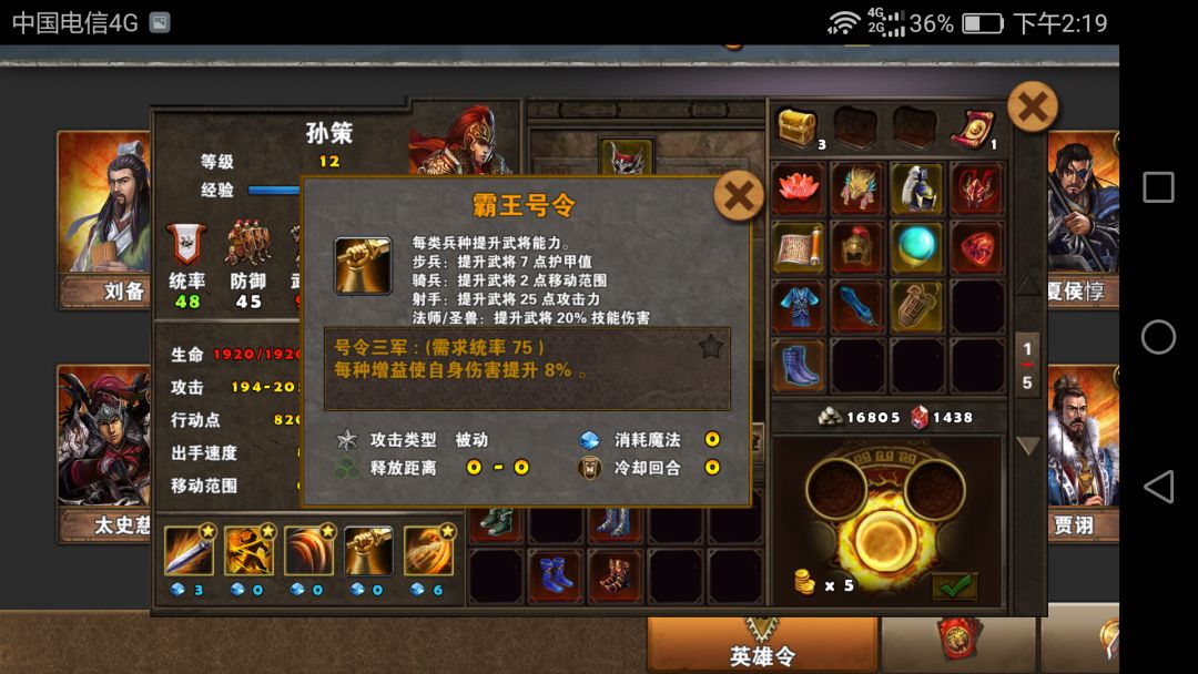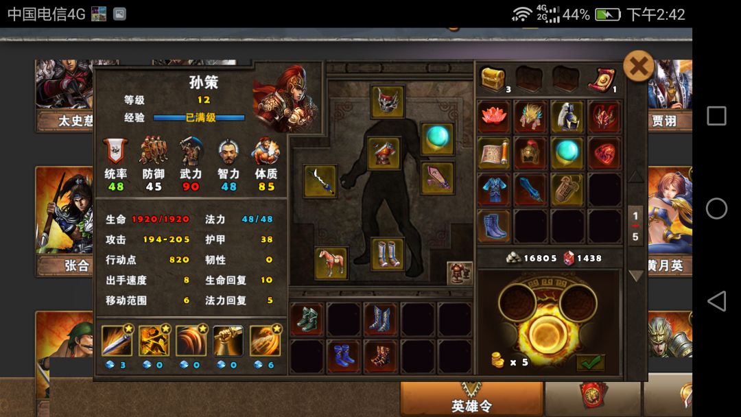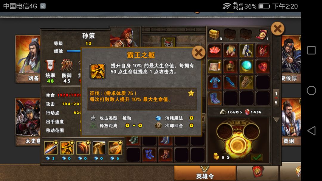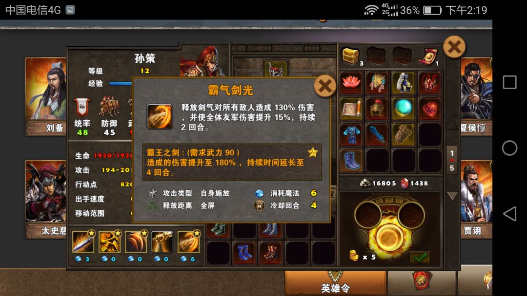 熟悉了孙策的技能,就可以给他配装了。好吧这是新手攻略,沿用老一套黄装。。。点亮1235没难度,至于4,黄装条件下果断放弃。