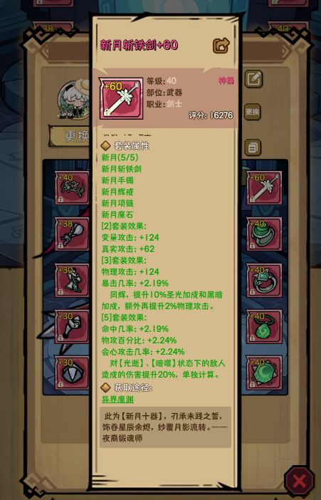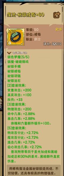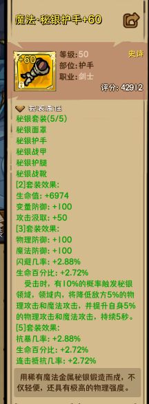 50级套装:秘银套装(我个人50级就随便穿了几件金色+粉色混搭,首图的金色套装是低价购买60级大佬的退役装备,属性啥都洗好了,真香!)