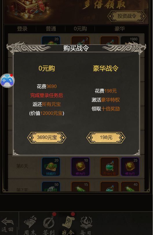 1、平时积攒元宝,战令投资3690任务留着,
