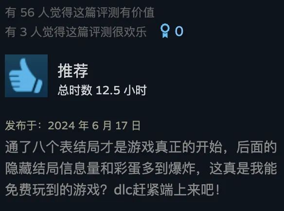为了避免重复游玩结局带来的倦怠感,还“使每个结局之间有线索相互关联,每个分支也都有较大的差异化”,玩家打出新的结局后,也能像拼图一样补全故事背景。