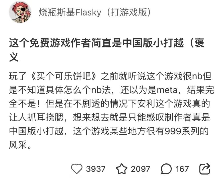 今年起,在Steam免费游戏相关的话题下,评论区总是出现一款游戏——《买个可乐饼吧》(下简称可乐饼)。