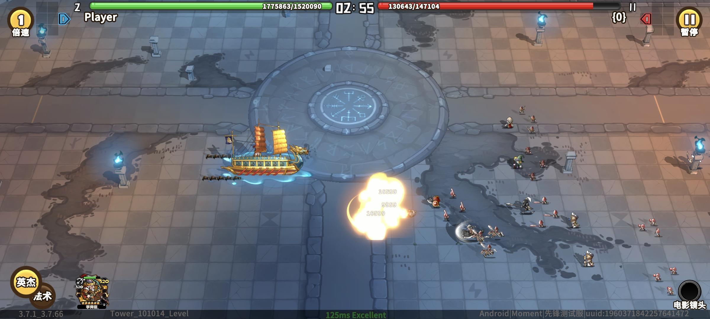 开局直接和小兵登船射炮,船会整合小兵和自身属性自带点减伤,对于后排算是比较硬的了,接近两个脆皮的坦度,不吃任何开场buff,每3秒开炮,和白袍甘道夫输出模式一样,不过他的是150%物攻全覆盖,每炮击4次会触发连击炮,2-4次浮动,比较看脸,小兵无伤害,综合比甘道夫输出略低一些。