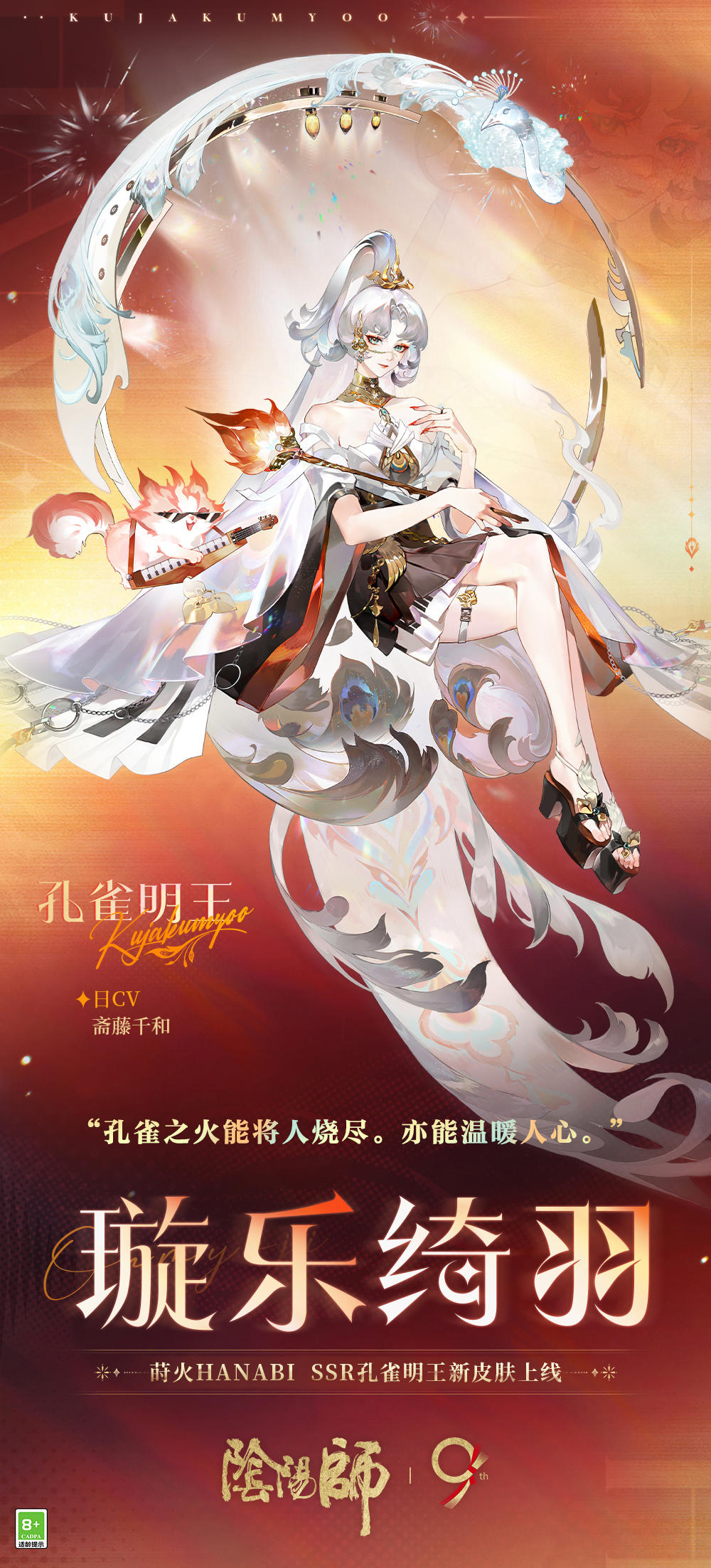 ※不知火新皮肤「蝶舞华扇」与孔雀明王新皮肤「璇乐绮羽」将于10月15日维护后上线,大人可通过「烬生华漪」活动获取。