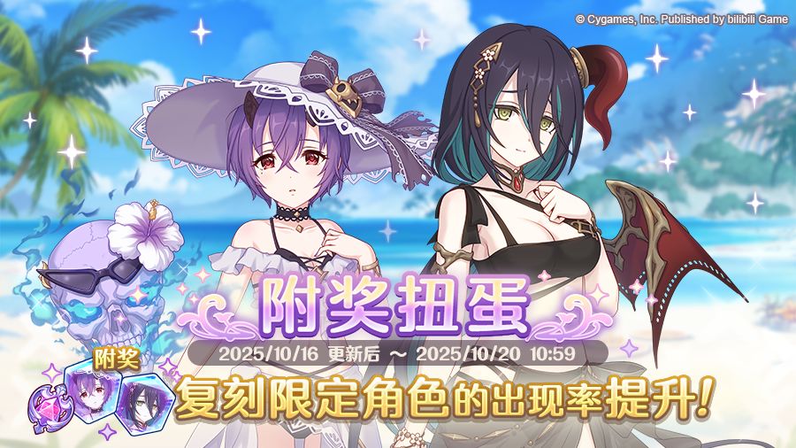 在附奖扭蛋中,期间限定角色「兰法(夏日)」、「忍(夏日)」的出现概率将进行提升!此外,还可获得额外奖品报酬。