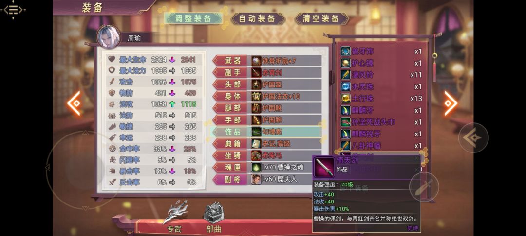 首先自己是微氪玩家, 就氪了一个诸葛一个周瑜,还有一把神器剑。目前阵容是燃烧队,周瑜,诸葛,法系扇子主角,刘备和左慈。周瑜是堆命中,所有神器没选扇子选的剑,为了加10命中。诸葛没得什么好说的就是输出兼顾大招回血。刘备一速就是加仁义和吸收伤害肉盾带孙坚头带。法系主角带曹昂魂混个二速大招加曹昂魂的大招免伤。左慈用火系技能来让周瑜打更多的风助火势(伤害很可观)。周瑜输出,装备方面优先堆命中为了更多的触发风助火势。这套下来爬塔还可以让主角学复活,低层刷装备是很舒服。这个阵容的核心就是周瑜大招好队友火系伤害触发周瑜的风助火势。