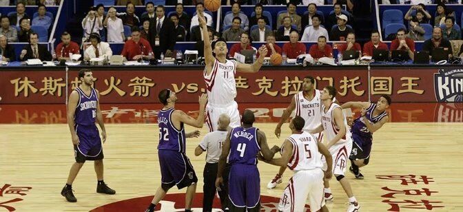 2004年10月14日,NBA季前赛首次登陆中国。姚明在家乡上海率领火箭队88-86击败国王。姚明出战26分钟拿下14分。