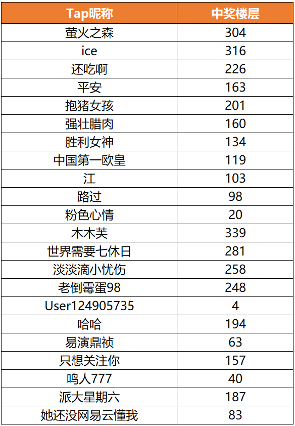 【获奖名单】除已中奖的5位幸运宝子,本次活动额外增加 22 位 中奖的幸运儿获得游戏礼包一份。