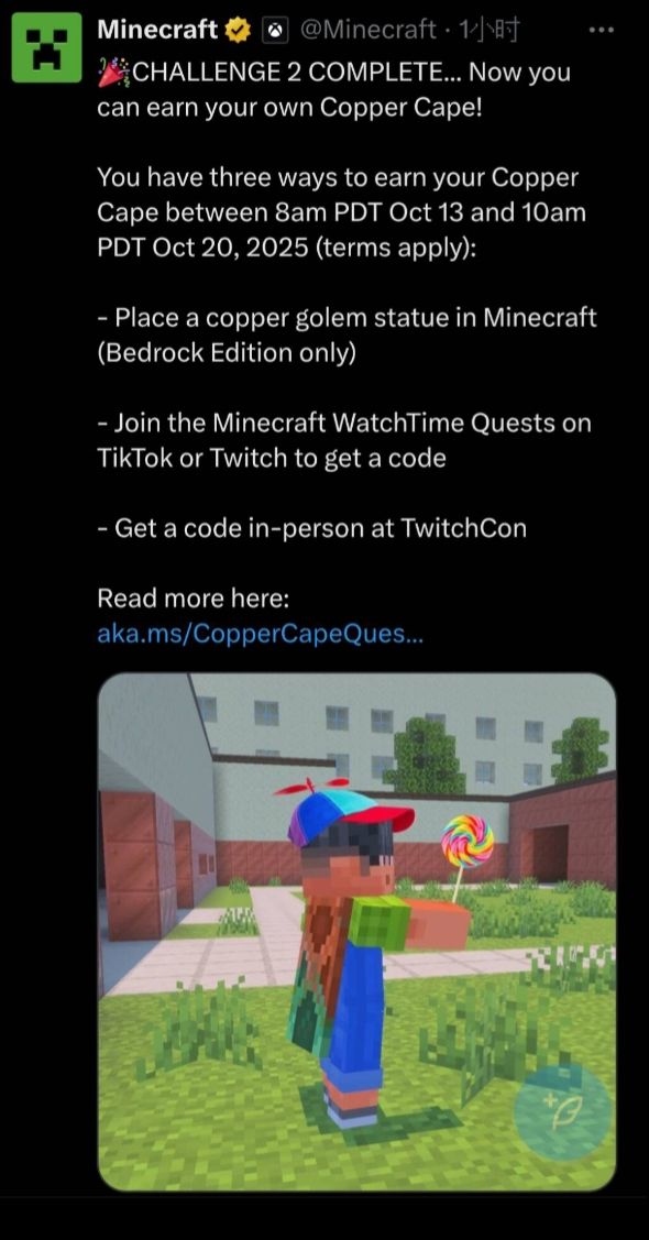 2.在TikTok或Twitch上加入Minecraft WatchTime任务以获取激活码(目前Twitch掉宝有点问题)