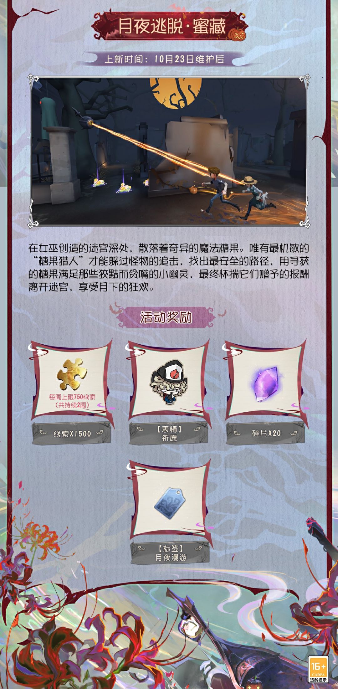 另外,“月夜逃脱”将升级为“月夜逃脱·蜜藏“限时返场!全新的玩法体验,等待大家探索~