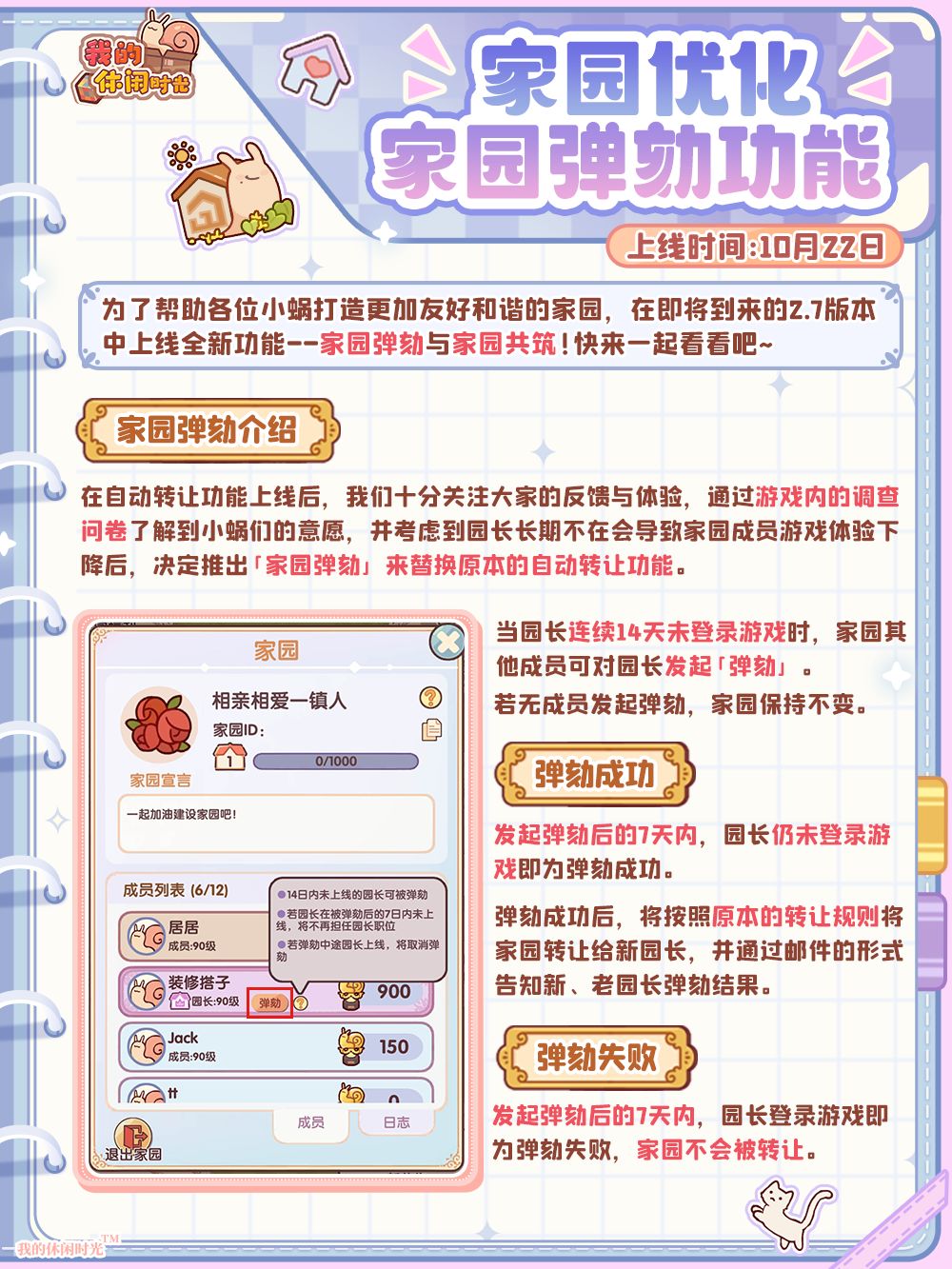 2.10月20日-26日的家园排行榜奖励将在10月27日通过「邮件」的形式发放,还请小蜗们及时查收。