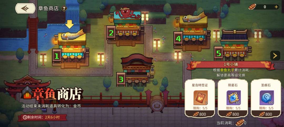 通过参与活动获得的“章鱼丸子”可在此兑换奖励,满足累计兑换数量要求可解锁更高级的商店奖励!