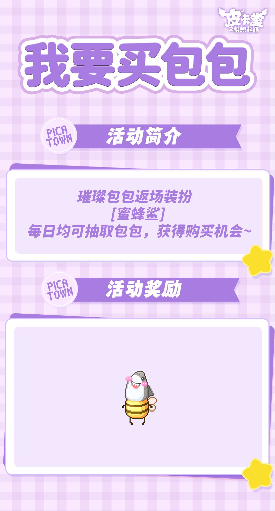 -【我要买包包】璀璨包包返场装扮[蜜蜂鲨]!每日均可抽取包包,获得购买机会~