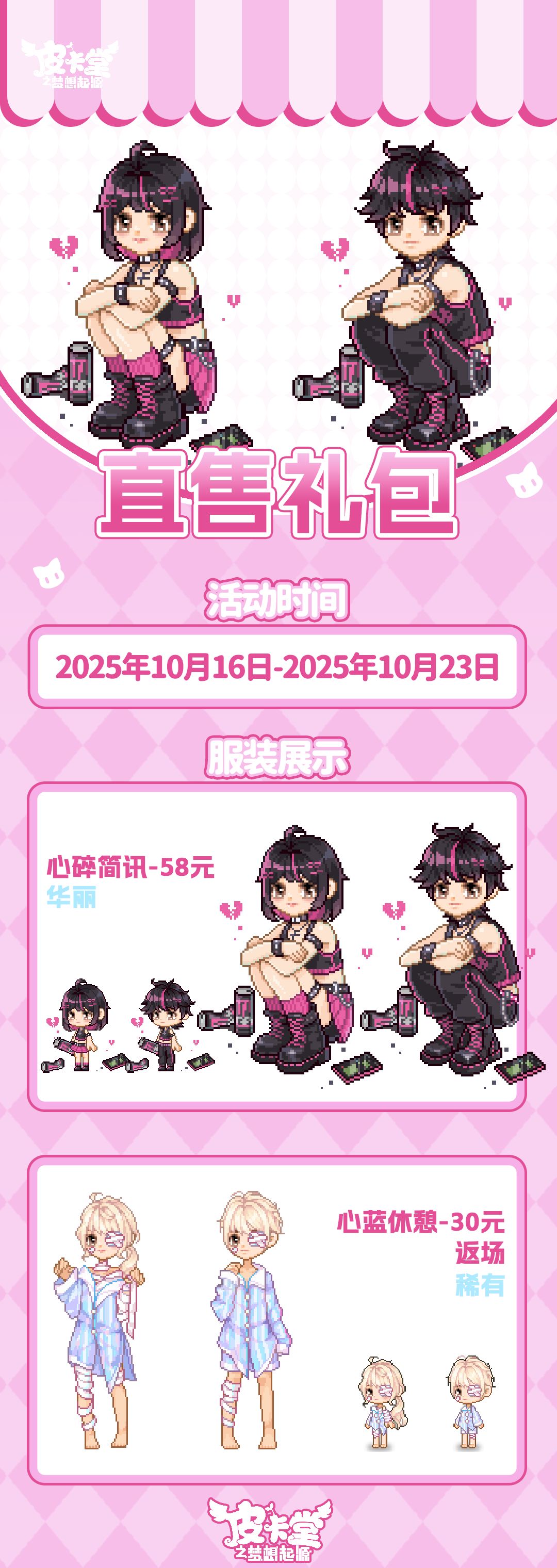 -【直售礼包】华丽套装「心碎简讯」上线!稀有套装「心蓝休憩」返场!
