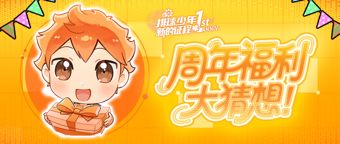 🎁关注账号@排球少年手游 在评论区留言你对周年福利的猜测,截止2025年10月31日23:59,我们将从全平台随机抽取20位参与活动的玩家送出镭射票(随机)1份。