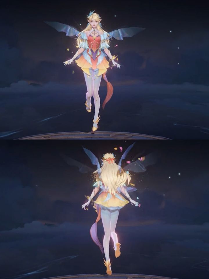 身后的翅膀与披风随她行动而舒展飘动,宛如精灵在