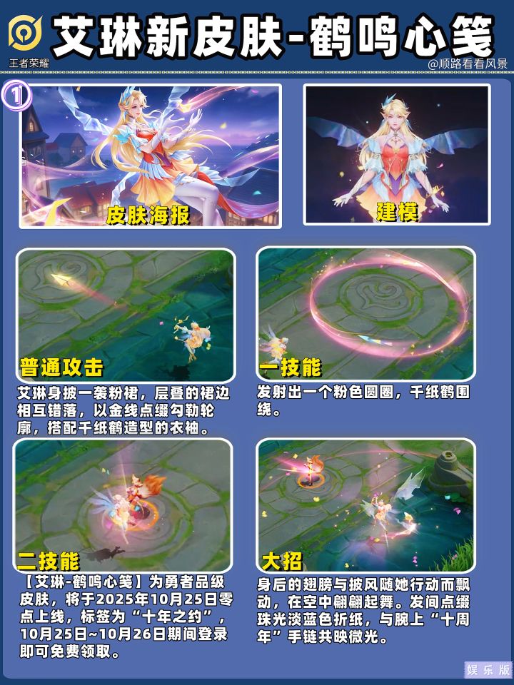 *【艾琳-鹤鸣心笺】为勇者品级皮肤,将于2025年10