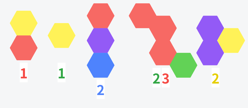 首先,我们放弃了筑梦颂类游戏一块一块搭建的游戏流程,转而让玩家获得数个地块组成的构形比如这样的: