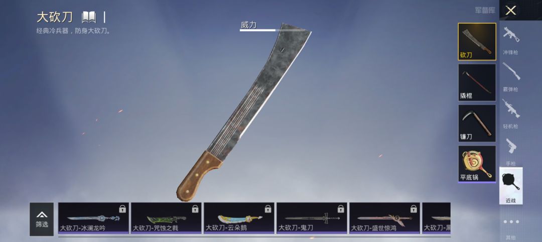 近战:大砍刀,撬棍,镰刀,平底锅。