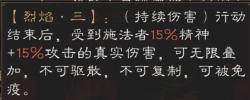 作为战场 “地形破局者”,周瑜的被动技能能够无视地形的属性衰减,在每一个地形都能充分发挥自身的属性加成优势。同时,每一次攻击都能给敌人施加【烈焰·三】的效果。这个效果会在敌人行动结束后,触发周瑜的双攻(精神+攻击)属性百分比的真实伤害,而且该效果能无限叠加,无法被恢复类技能驱散。这也是周瑜被称为战场上当之无愧的“持续输出之王”!。
