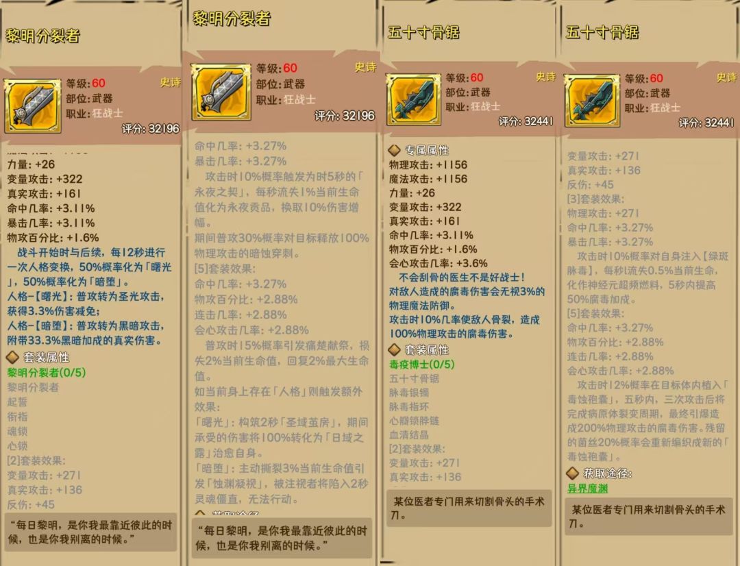 因为60武器毒疫套是加毒伤,黎明套是光暗属性,而且我看了一下80的装备仍保留着毒伤增幅