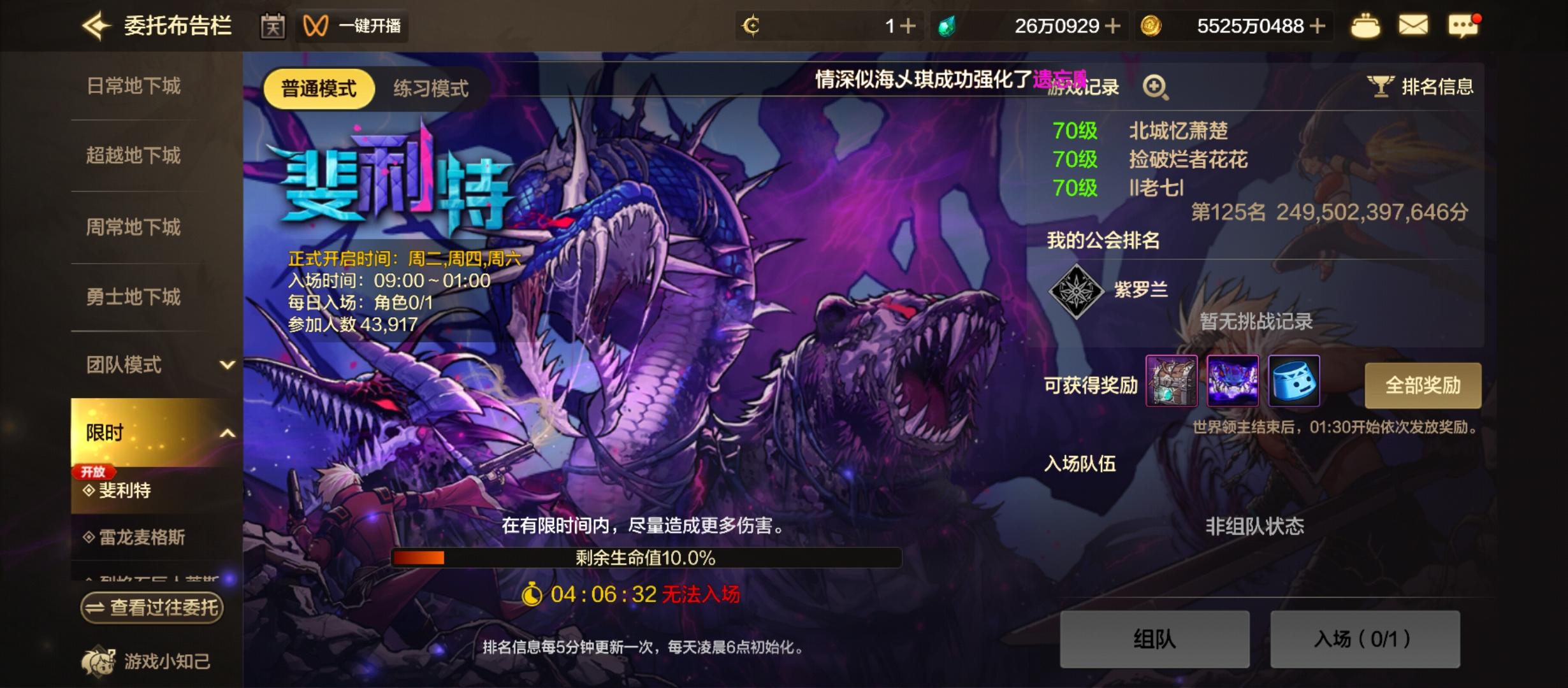 再来看看小号花花,有个队伍缺辅助,然后我就申请了,其实这个小号平时不打世界领主,最近凑齐防具五件套才想着打一下试试,然后申请立马就被同意了,被两个9.0以上C(有一个好像9.7+)带飞了