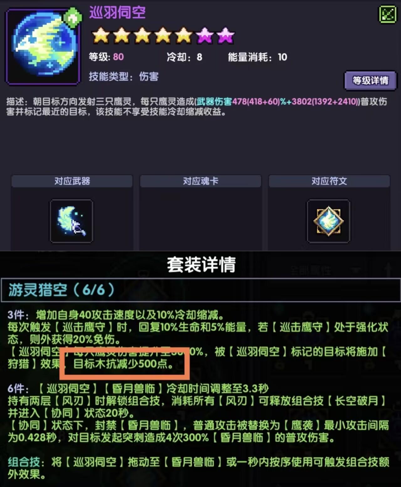 PS:需要注意的是新木游侠对群魂珠的木易伤需要携带新木魔女武器,而且让对群魂珠的木易伤生效的话符文的500减抗也会消失(即使是有新木游侠主c的情况下也只能生效一个),因此我们选择只吃符文的减抗。
