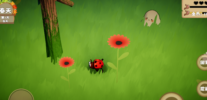 基础地形大概完成后,还是希望让玩家有陪伴,在森林中增加一个精灵,这个精灵是需要随机碰到,不希望他每次都在固定位置,就像真的精灵一样等我们去发现他,如果发现了他,他才会跟你走,当然也希望能加入一点小情节,就是他走丢了,他很伤心,正在哭泣,这片森林很危险,所以他依靠你,不过在这个设计里面,我希望他可以帮助你,当然会在后面进行继续设计。