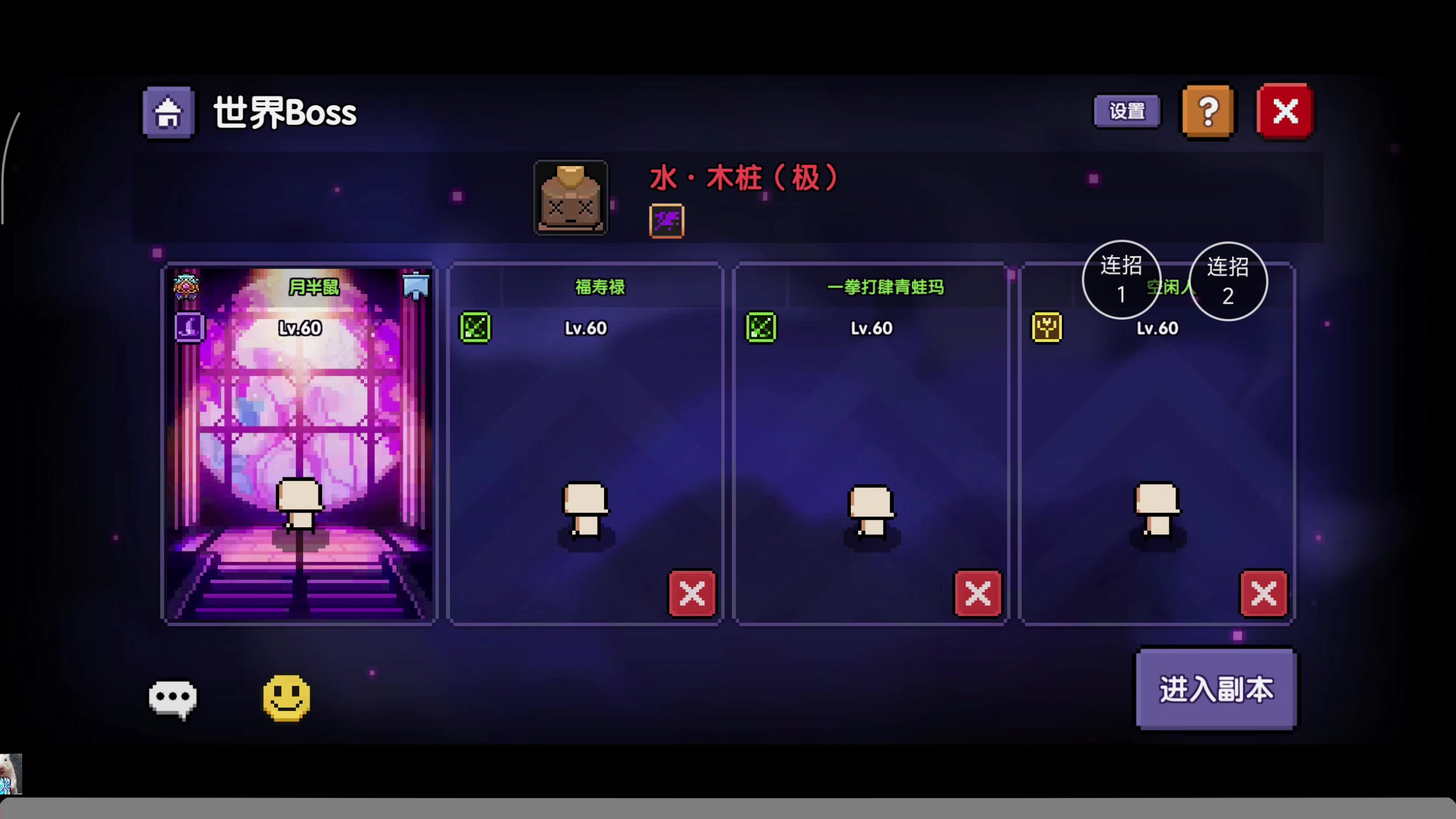 一键连招的设置如下,橙技能为技能1,紫技能为技能2。