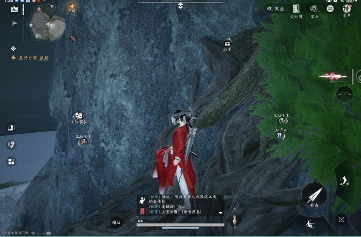 这个是在这个是在石桌那块儿有信有花有小刀的那个地方。在上面也就三四十米。