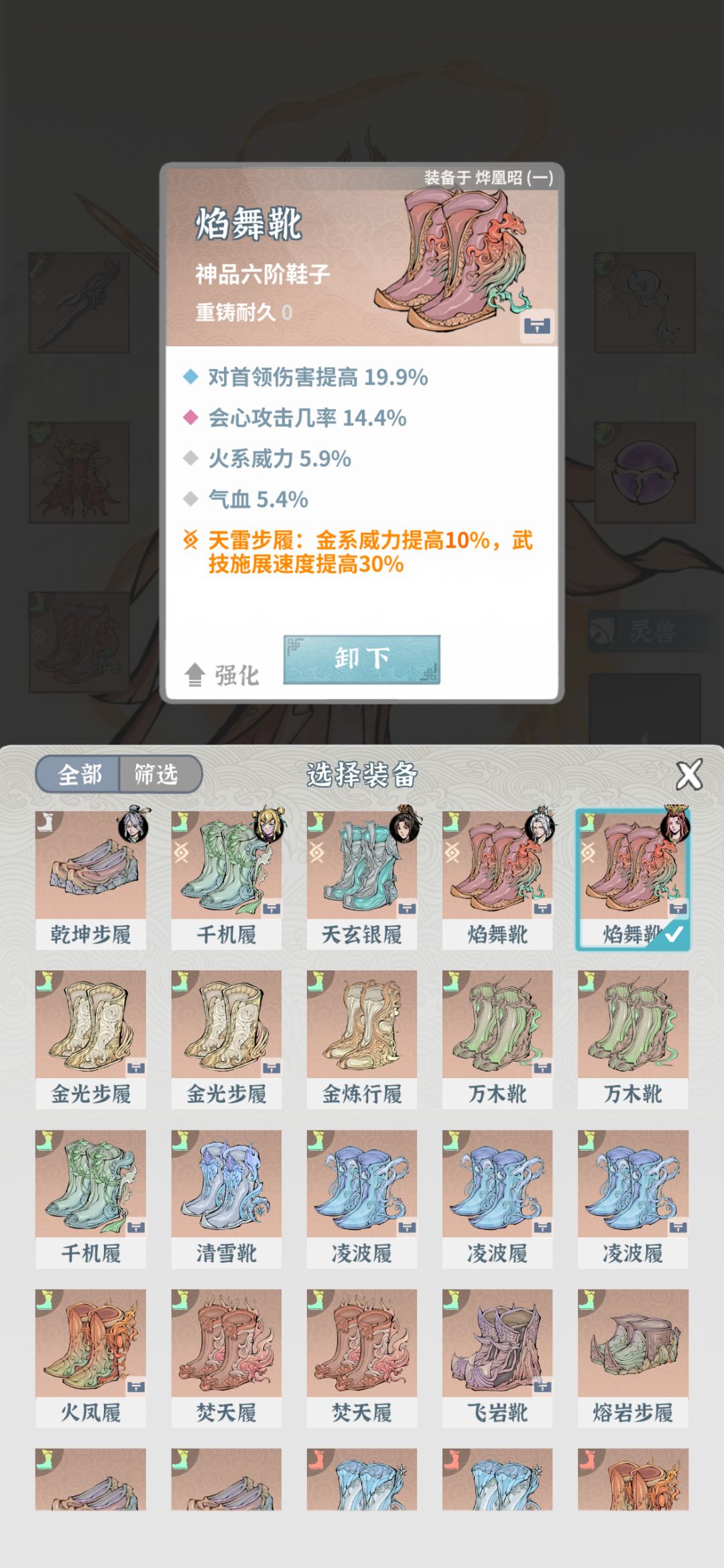 几个重要点说下。第一,灵兽的减CD其实不用洗,我是懒得换火枪加CD了。带火枪绝配,CD正好4.2秒,也就是火凤凰放8次,绝技就好了。剩下一次正好累积一个。累积三十个需要30秒。而4.2秒带减武技CD,就是0.7秒三次。4.2秒攻击18次。输出最大话。