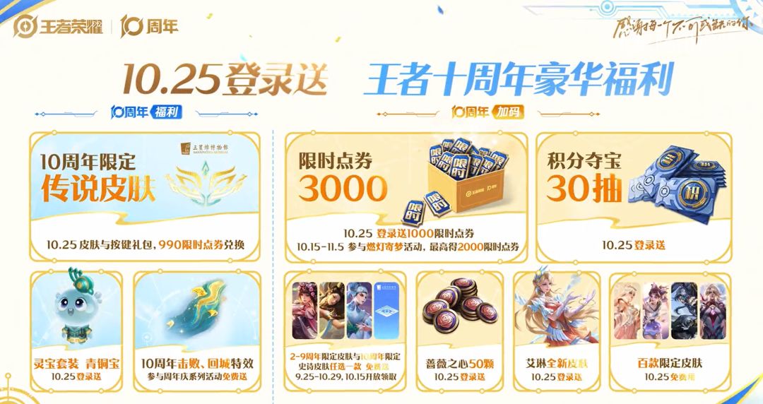 从免费皮肤到限时点券,从新英雄上线到全皮肤限免,本次十周年庆典的奖励总额价值超过4500点券,折合人民币450元以上。