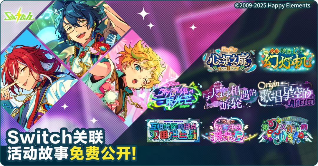 本日起至10月30日10:00活动期间,游戏内将免费公开【感谢庆典*纺织缘分的World Switching】中所出场组合「Switch」相关联的组合活动故事及组合成员参与的巡演活动故事——