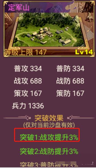 可以看沙盘第一条突破的属性,如果第一条突破属性是战攻提升3%之类的,那么该沙盘就是倾向战法的,以此类推。
