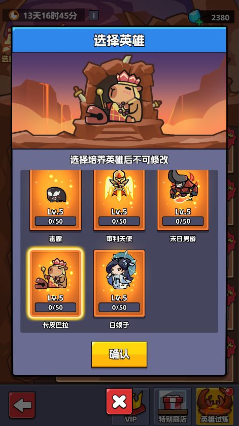 注意!参与试炼的英雄选择后无法再次更改!指挥官们要想好让谁参与试炼哟~