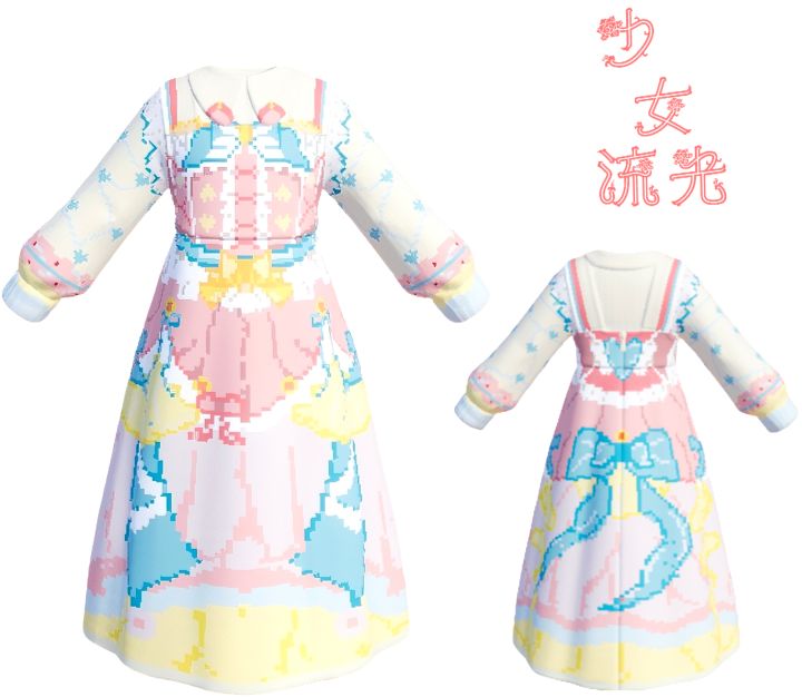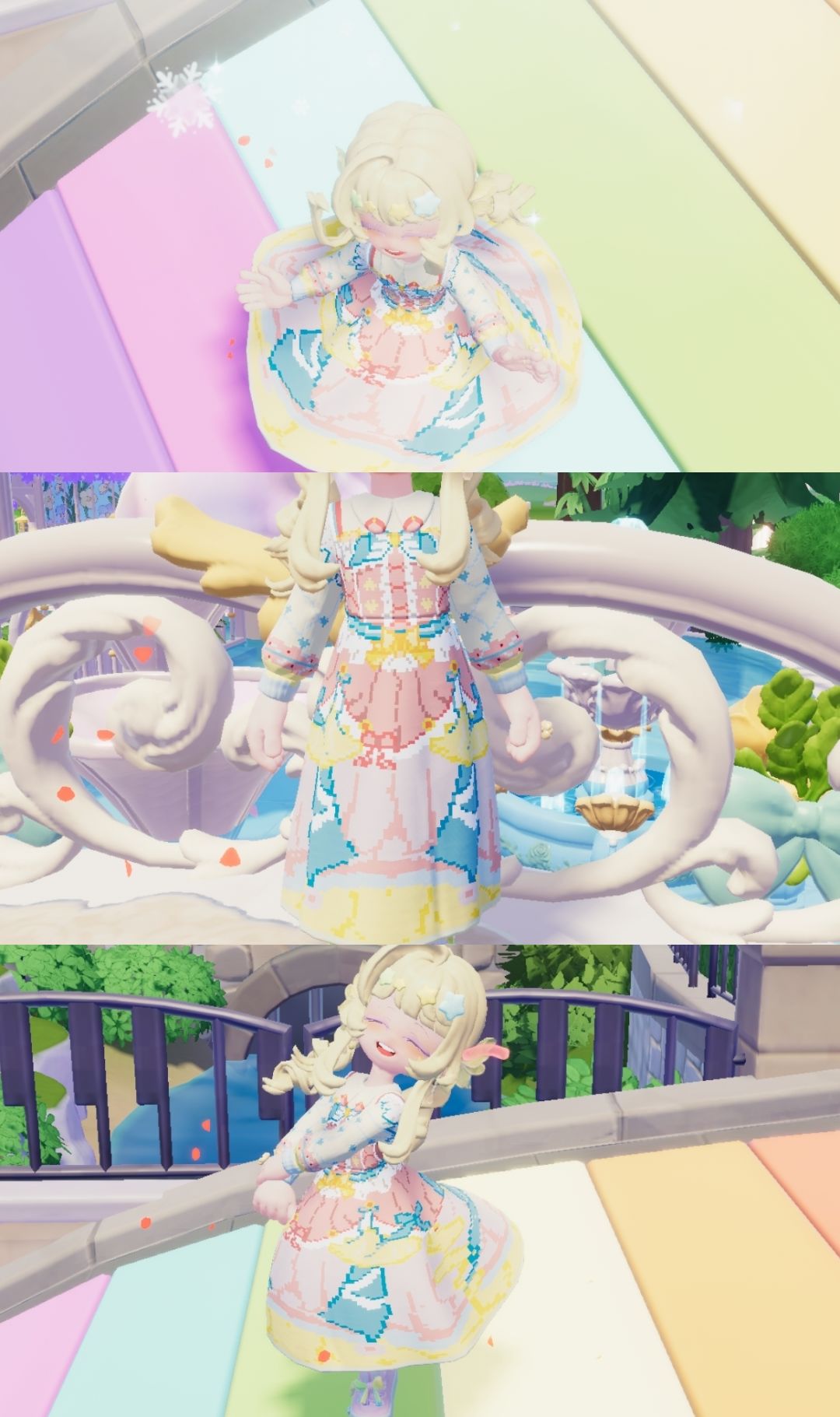 我的作品是少女流光,在我心里少女是集阳光浪漫开心与明媚等一切美好事物的共存体,正像这条五彩的裙子一样,作为少女的我们也许没有那么完美,但在心动小镇里面的我们是完美的,在追求美丽的裙子,五彩的花,漂亮的小庄园的瞬间,我想少女的心事是开心的