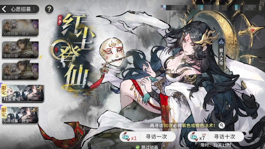 招募道具:消耗活动专属道具 “帝缘令”,可在「红尘登仙」界面参与招募。