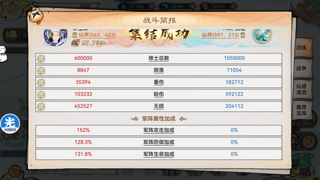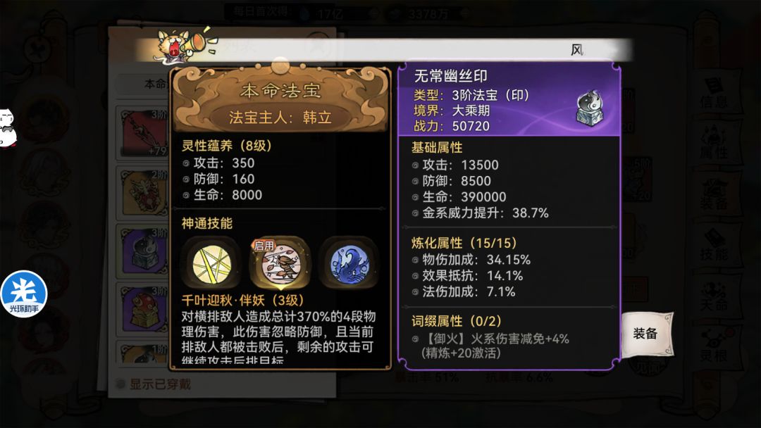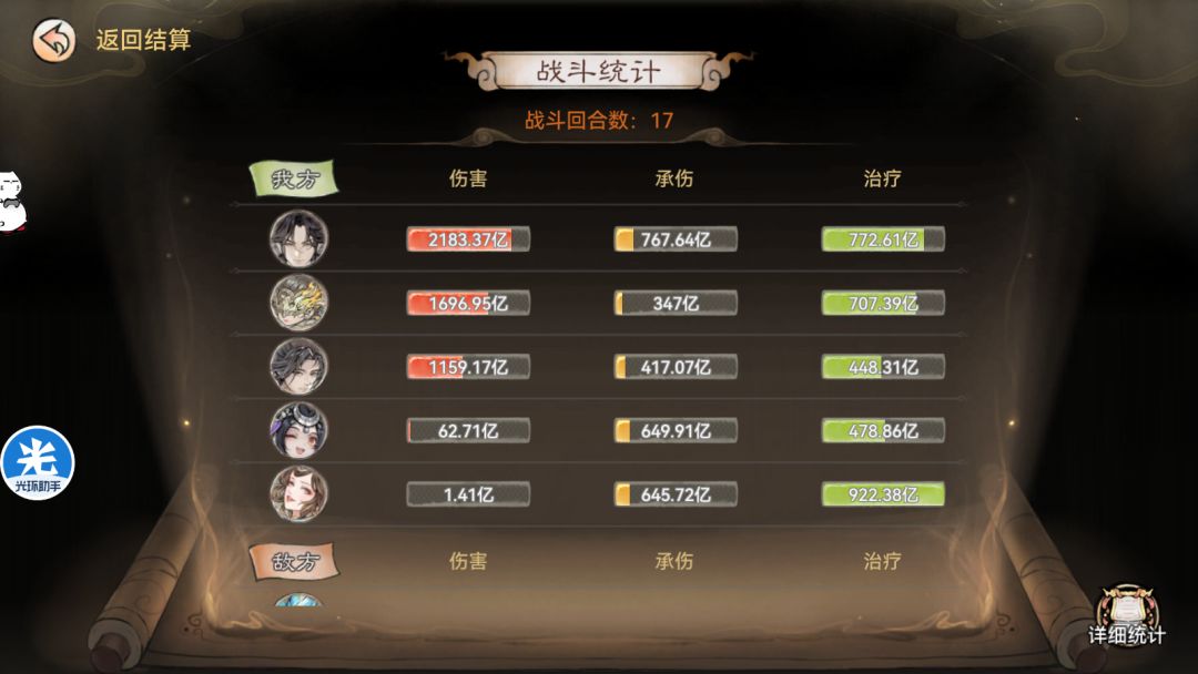 先叠甲:目前up主的船各类加成加起来攻击在150%,整体战力在57亿。不过确实用到【凤里栖】了。全程用的依旧是三阶法宝,如果用四阶肯定更轻松。如果你的各项加成也差不多,那其实可以试试。