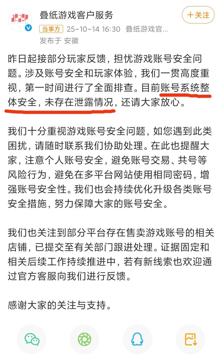 10月14号,叠纸官方回应《恋与深空》盗号问题,称账号系统整体安全,未存在泄露情况❗❗❗