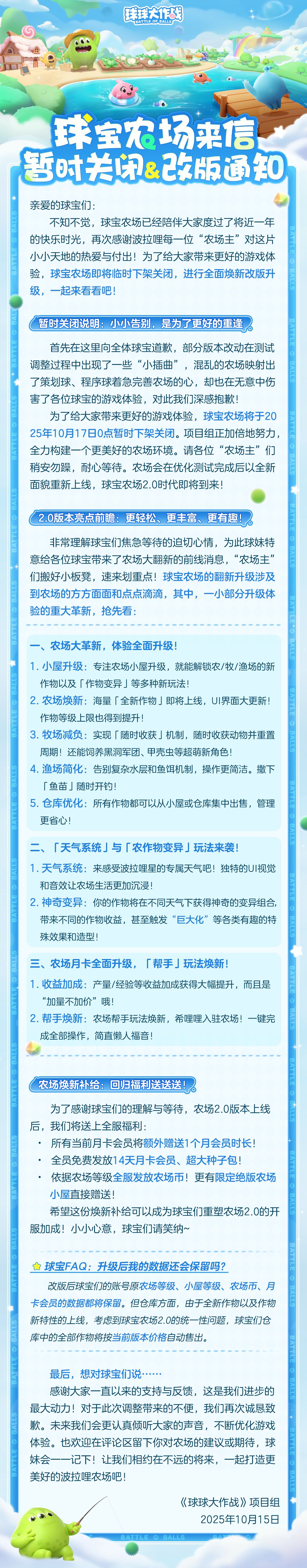 【公告】球宝农场暂时关闭及改版更新通知