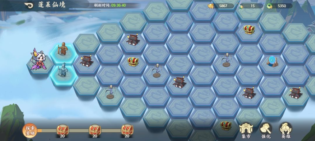 蓬莱优先通关,最多步数三十,前16步不要元宝,里面商店升阶丹要买,灵气可买。