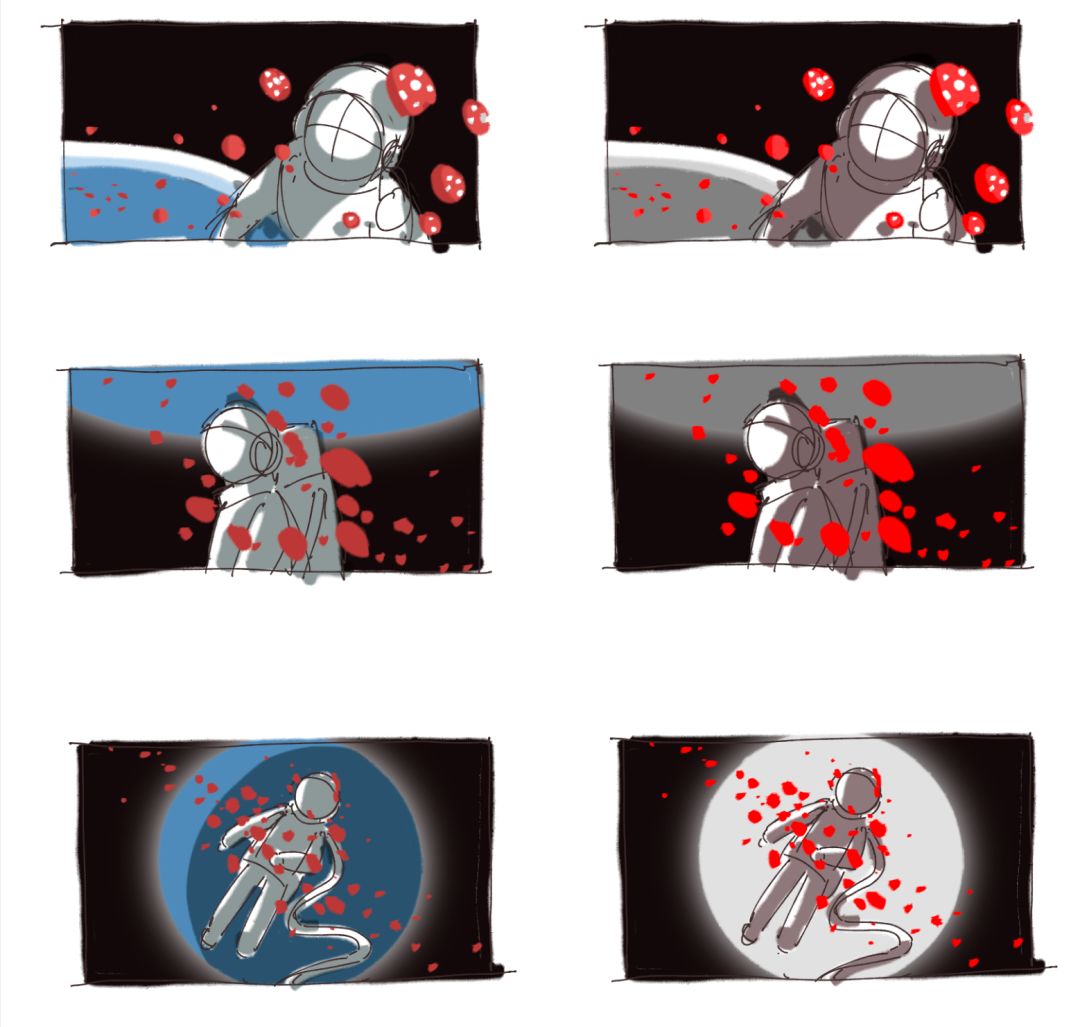 对于第三张画面,她其实还埋了一层隐喻——宇航员身后的行星背景就像是一张圆盘,而宇航员则是盘中餐。