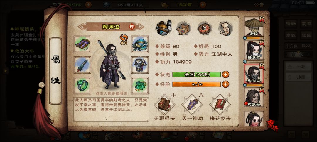目前是在做长生的路上,目前天一全自动过关,枯骨微微手操一下过关。现在是备战燕王。打算少林换完般若和金钟罩去极乐,还是把少林三个拳都换了再去
